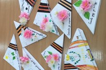 6 мая обучающиеся творческого объединения «Мультик», руководитель Зиннатуллина А. И., сделали поздравительные открытки Ветеранам в виде фронтовых писем треугольников.