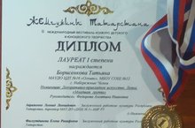 В городе Нижнекамск прошёл II Международный фестиваль - конкурс "ЖЕМЧУЖИНЫ ТАТАРСТАНА". Поздравляем Борисенкова Татьяна с победой! Таня занимается в творческом объединении «Мастерок», руководитель Федорова А.И.