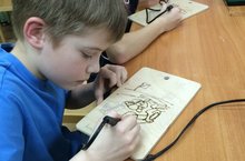 10 февраля в МАОУ "Прогимназии №64" проведены мастер-классы по пирографии. Пирография - «рисование огнем», т. е. выжигание. Педагог ЦДТ № 16 «Огниво», Серова Т. И., показала детям, как подготовить эскиз, перенести рисунок на дерево с помощью копировальной бумаги и как правильно наносить штриховку. Готовое изделие может стать отличным подарком.