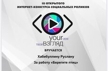 3 декабря состоялась церемония подведения итогов III Международного фестиваля социальных роликов «Твой взгляд @ Европа – Азия». Фестиваль, собрал более 300 видеоработ со всей России, а также из Украины, Белоруссии, Казахстана и Турции. Хабибуллин Руслан, обучающийся творческого объединения «Английский через исскуство», тоже принял участие в этом фестивале и, хотя он и не стал победителем, мы очень гордимся им и желаем ему дальнейших побед и успехов!