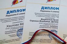 Поздравляем с победой в I Всероссийском конкурсе молодых исполнителей на народных инструментах "Tutti. Folk" Сафина Альберта, который стал лауреатом II степени. И Салихянова Рамазана дипломанта конкурса. (рук. Богаченко Н.В.)