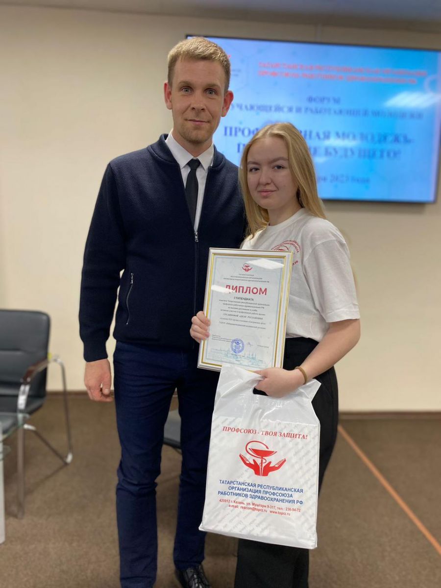 Колледж на форуме представили преподаватель иностранных языков Юсупова Динара Альбертовна и студентка 3 курса, председатель студенческого совета, активист студенческого профсоюза Хусаинова Аделя, которая была удостоена диплома профсоюзного стипендиата.