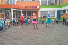 Педагоги провели замечательное развлечение на улице. Создали настоящий веселый праздник. Были игры, песни, танцы, приходили сказочные герои, в конце праздника дети рисовали на асфальте цветными мелками рисунки и пускали мыльные пузыри.