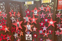 В холле детского сада оформили " Стену памяти" посвященная 80- летию Победы. Приглашаем всех почтить память своих родных, участников Великой Отечественной войны . Требование : оформить в виде звезды.