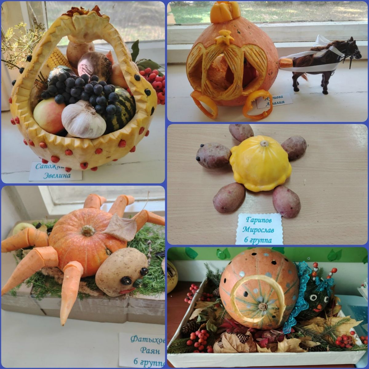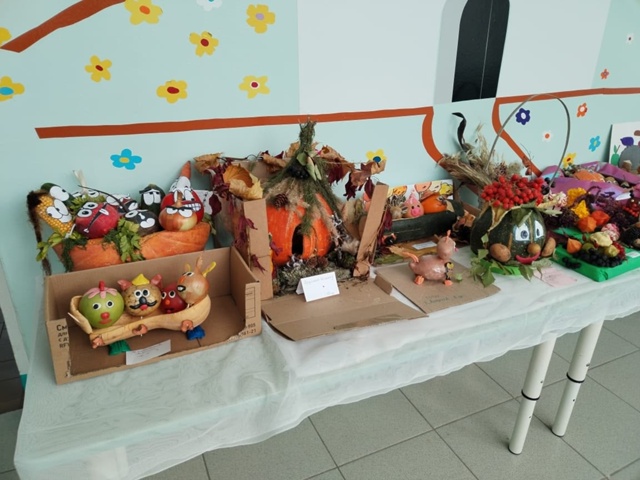 В группе √6 традиционно проводился осенний конкурс "Забавные овощи". Родители с детьми приняли активное участие, проявив свое творчество и художественный вкус в совместных работах, показали великолепие овощного мира.