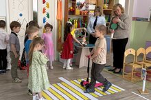 В детском саду в старшей группе № 13 прошло занятие по безопасности дорожного движения "Я- пешеход". Пришли гости : инспектор ГИБДД и Буратино.