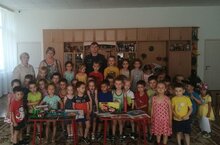 Дети заранее подготовили поделки и рисунки по пожарной безопасности. Вадим Вадимович наградил грамотами.