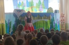 С поучительной сказкой к нам в сад для ребят приходили гости: Красная Шапочка,Серыволк, Бабушка, Мама Красной Шапочки, Сорока Белобока и даже Охотники.