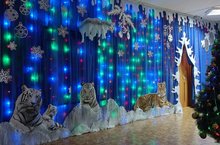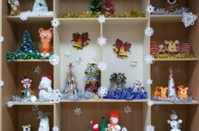В рамках подготовки музыкального зала к проведению новогодних утренников был оформлен творческий вернисаж. Каждая возрастная группа в музыкальном зале представила своё " новогодние путешествие тигрят"