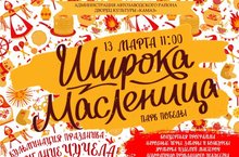 13 марта 2021 года в 11.00 в парке культуры и отдыха «Победа» состоится городской праздник «Масленица». В программе: концерт, народные игры и забавы, конкурсы, состязания, детская игровая развлекательная программа «Заигрыш» от Набережночелнинского цирка, ярмарка изделий мастеров декоративно-прикладного искусства, блины, ростовые куклы, катание на пони и лошадях. -