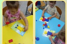 Дети, накладывая цветные блоки Дьенеша на иллюстрацию, испытывают радость созидателей, когда под их руками, плоскостное изображение превращается в объёмные предметы.