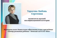 Подведены итоги 1 тура муниципального этапа конкурса «Воспитатель года -2023». Конкурсное задание «Моя педагогическая находка» в 1 туре представили 42 педагога из 42 дошкольных образовательных учреждений. По итогам 1 тура на 2 тур прошла наш воспитатель - Тарасова Любовь Сергеевна. Поздравляем с успешным завершением 1 этапа и желаем успехов и победы во 2 туре конкурса!