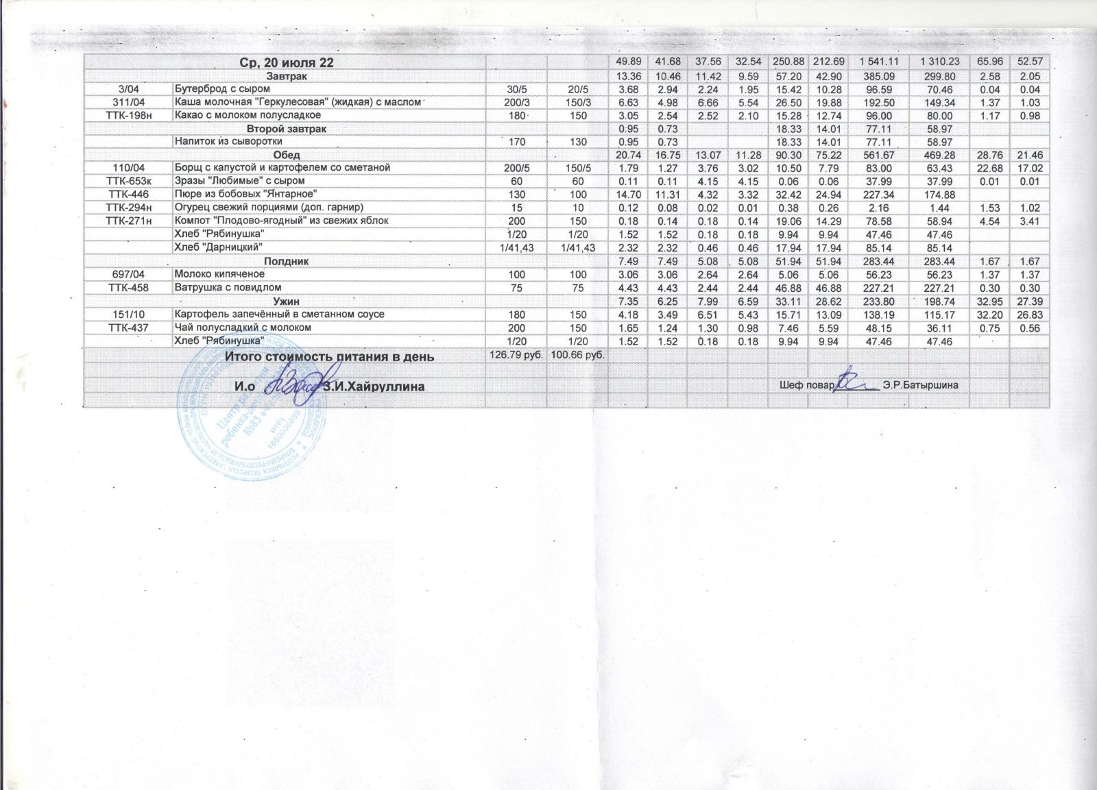 Меню на 20 июля 2022