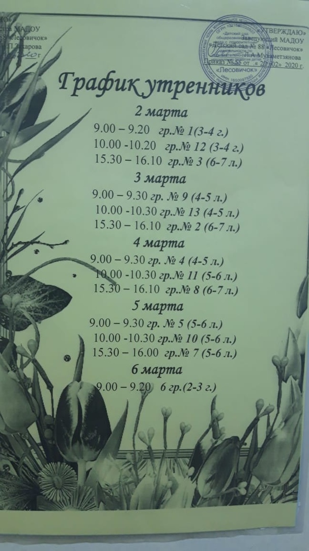 График весенних утренников