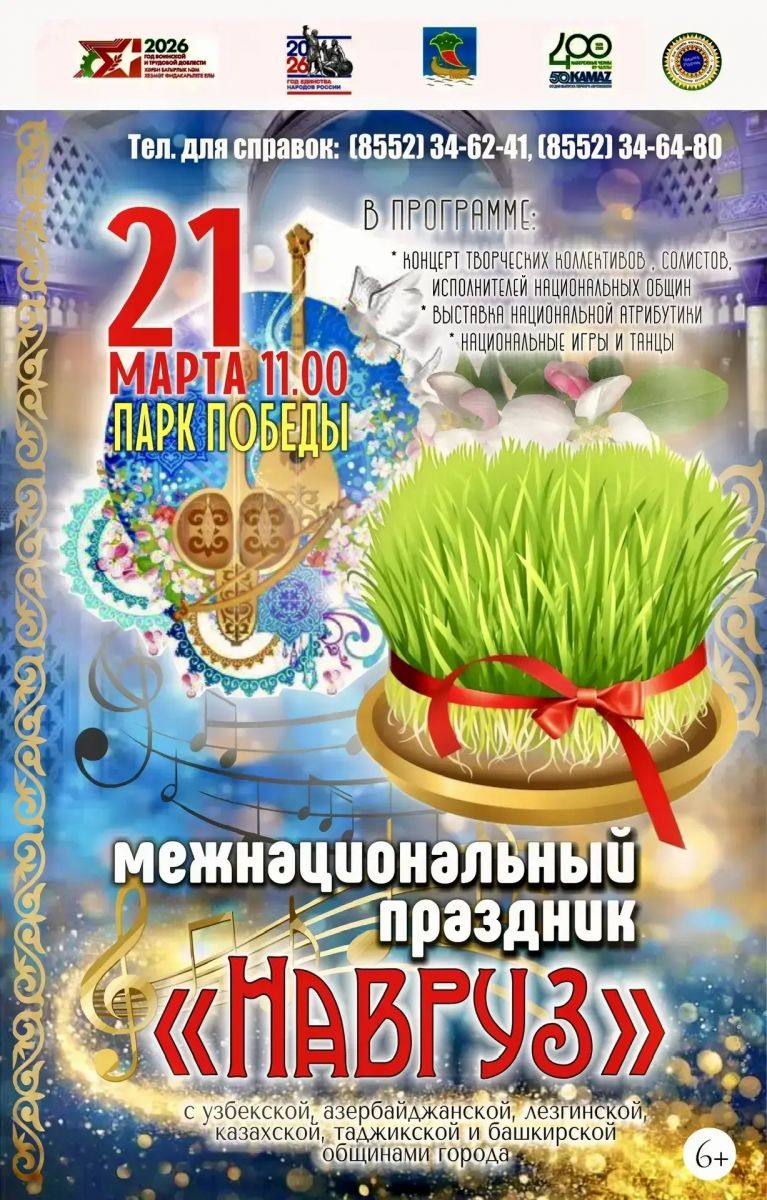 21 марта 2026 года в 11.00 в парке культуры и отдыха «Победа» состоится межнациональный праздник «Навруз» с узбекской, азербайджанской, лезгинской, казахской, таджикской и башкирской общинами города.