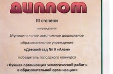 За лучшую организацию по экологической работе в муниципальном образовании Прикамского региона наш детский сад награжден Дипломом 3 степени! Поздравляем! -