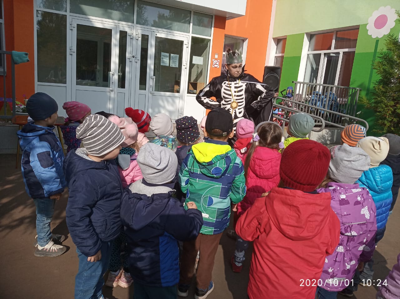 Опубликовано: 01.10.2020Сегодня в нашем саду прошел квест "Золотая осень". Дети ходили по станциям,где их ждали герои сказок. Дети с большим интересом выполняли задания Кащея Бесцветного, который украл нашу Осень. Все задания были выполнены и Осень снова к нам вернулась с танцами, песнями и конечно же с угощениями.