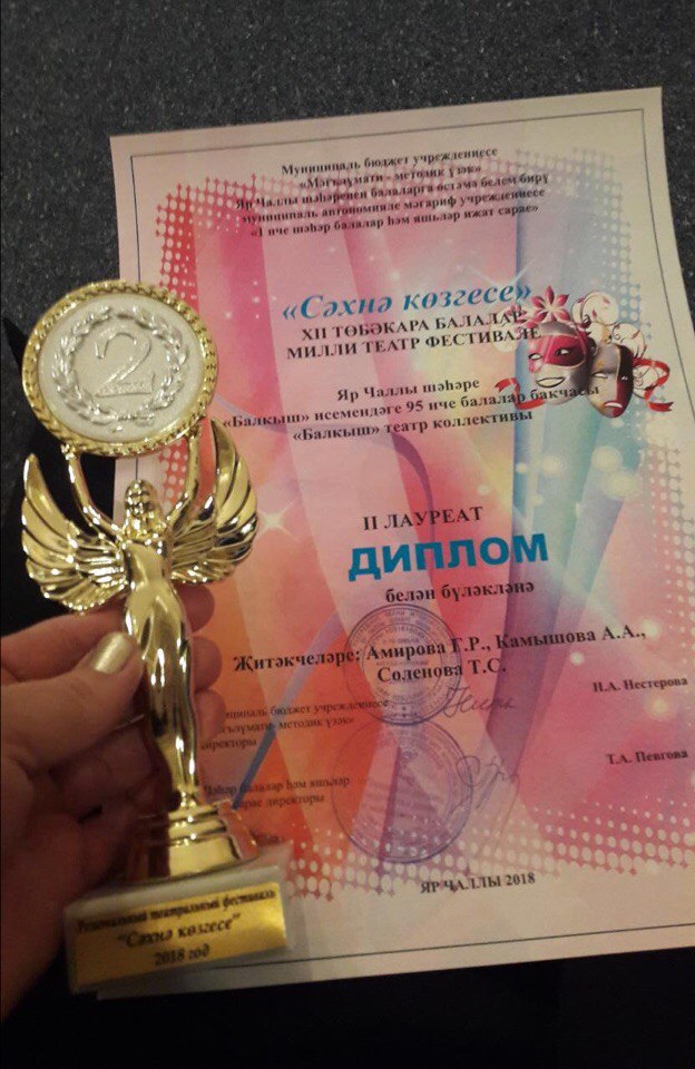 Опубликовано: 27.02.2018Театральный коллектив воспитанников "Балкыш" были награждены дипломом лауреата II степени за выступление на региональном конкурсе "Сэхнэ козгесе"