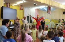 Педагоги Балкыш показали сказку "Заячья избушка" для всех групп. Детям очень понравилось представление.