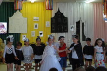Воспитанники Балкыш случайно попали на волшебную поляну Шахматного королевства и стали почетными гостями Большого Шахматного бала. Познакомились с жителями королевства, поиграли с ними. Передвигались по шахматной доске, соблюдая правила шахматной игры.