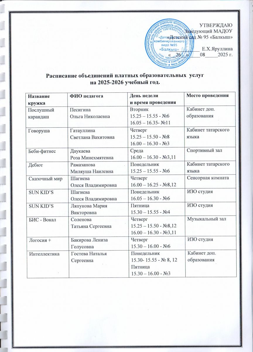 - Расписание работы группы кратковременного пребывания Вырастайк