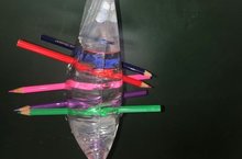 Если сделать в пакете с водой отверстие, вода из него, конечно же, вытечет. Интересно, а можно ли проткнуть пакет с водой карандашами так, чтобы вода из него не вытекала? Проведём эксперимент!????