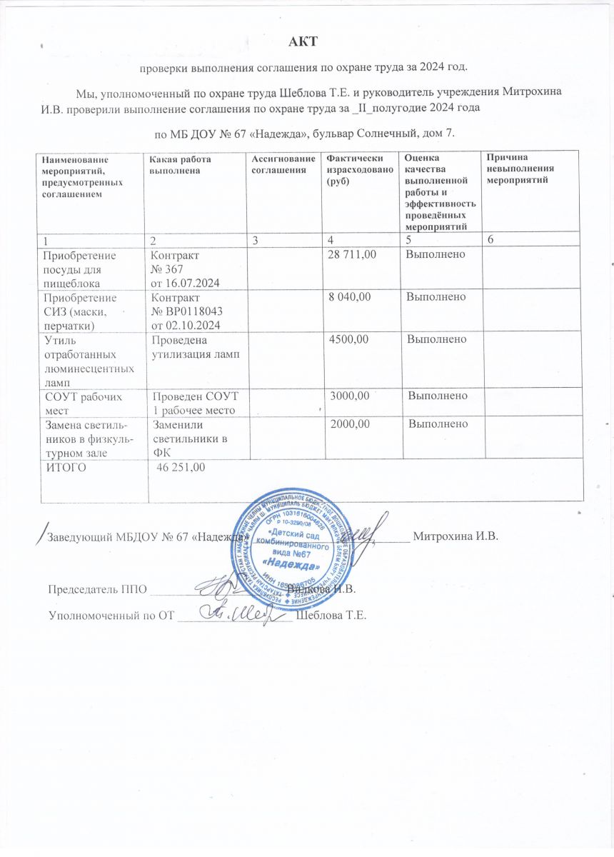 Акт проверки выполнения соглашения по ОТ за 2024г.