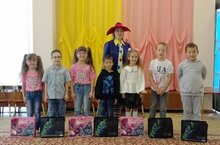 Детям сотрудников нашего ДОУ, будущим первоклассникам, торжественно вручил подарки Незнайка, который пообещал тоже хорошо учиться и читать много интересных книжек. В подарочный набор вошли необходимые канцелярские товары, принадлежности для письма и рисования.