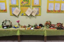 Осень – чудесная пора и она вдохновляет своей яркостью и пестротой красок на воплощение прекрасных творческих идей. В нашем детском саду прошла выставка поделок "Осенние фантазии" (композиции из овощей, фруктов и листьев). Родители совместно с детьми смастерили замечательные поделки. Ни одна работа не повторяется. Все экспонаты выствки – стали прекрасным украшением интерьера холла. В каждой работе прослеживается творческая индивидуальность и фантазия каждой семьи. Все работы оригинальны, неповторимы и интересны.