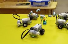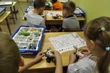 Изобретатели подготовительных групп клуба КИРТ учатся программировать своего робота.