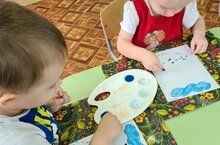 В 6 группе дети с воспитателем Анной Сергеевной рисовали ватными палочками на тему "Дождь".