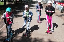 Погода радует и мы решили провести время весело и с пользой, устроив гонки на самокатах. Катание на самокатах способствует развитию динамического равновесия, ориентировки в пространстве, глазомера, ловкости, выносливости, укрепляет мышцы ног. Более того, катание на самокатах способствует воспитанию смелости, настойчивости, взаимопомощи.