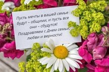 Сегодня, 8 июля, в России отмечается праздник День семьи, любви и верности. Он несёт в себе возрождение лучших семейных и общечеловеческих ценностей – любви и верности - и направлен на воспитание молодёжи в духе патриотизма и любви к малой Родине, семье, на развитие преемственности культурных традиций народа. Семья – это крепость, за стенами которой могут царить лишь уважение, взаимопонимание, преданность и любовь. Этот праздник - день памяти Православных святых, супругов Петра и Февронии, почитаемых в России как хранители семьи и брака. У этого праздника есть замечательный девиз: "Любить и беречь". Желаем всем любить и беречь своих родных и любимых людей! Пусть в ваших домах царят уют и гармония. Берегите свои семьи, храните в них тепло и уют, растите детей достойными гражданами своей страны, передавайте добрые семейные ценности, ведь семья - это истоки, это самое дорогое и самое важное в жизни человека. Пусть чистота и сила любви ни на миг не покидает вас, а счастье будет ежедневным украшением семейного очага! С Днём Петра и Февронии!