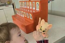 К малышам 3 группы в гости пришёл котик. Дети с воспитателем Светланой Рудольфовной очень обрадовались встрече с ним. И решили угостить кота печеньем. Они приготовили печенье из пластилина. Котик остался очень доволен. -