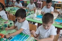 Воспитанники 3 группы увлеченно рисуют под руководством воспитателя Светланы Рудольфовны. -