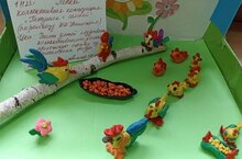 В подготовительной группе 6 прошло занятие по лепке на тему "Петушок с семьей" по рассказу К.Д.Ушинского. Ребята изготовили коллективную композицию. Цель занятия: