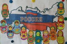 В подготовительной группе ребята познакомились с историей возникновения праздника, рассматривая карту нашей Родины. Любознательные девочки и мальчики нарисовали матрëшек в национальных костюмах, сделали стенгазету, параллельно спев песню "Родина моя".
