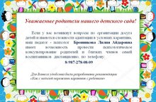 Если у вас возникнут вопросы по организации досуга детей и имеются сложности адаптации в условиях карантина, наш педагог - психолог Бронникова Лилия Айдаровна имеет возможность провести психологическое консультирование родителей и близких членов семей воспитанников дистанционно, по телефону: