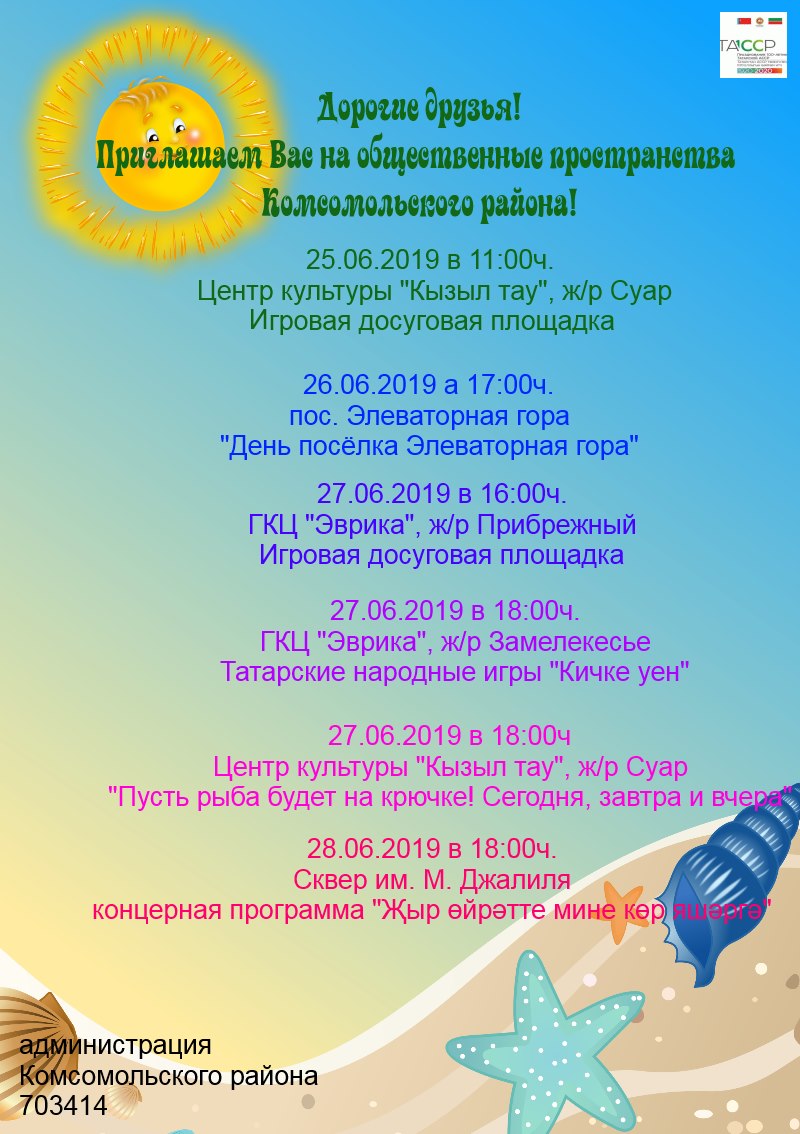 Приглашения на мероприятия Комсомольского района 24.06.2019