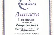 Поздравляем с очередной победой нашу воспитанницу подг. гр. № 12 Ситдикову Алию! 24.12.2015