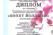 От всей души поздравляем наших воспитанников с дипломами 3 степени в республиканском фестивале-конкурсе национального татарского искусства "Бэхет йолдызы"!!!" в номинациях вокал и художественное слово 03.12.2014