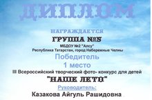 И снова победа!!! Мы получили 1 место в 3 Всероссийском творческом конкурсе "Наше лето"" 04.12.2014