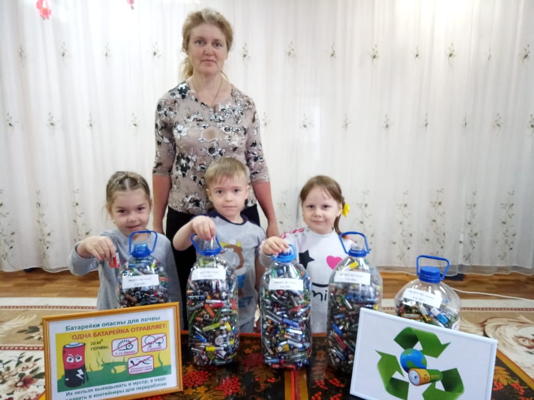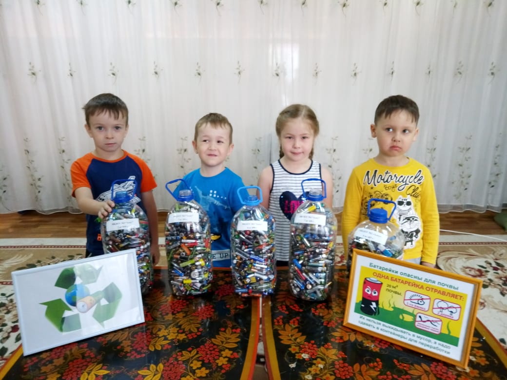 В группах были установлены прозрачные бутылки для сбора батареек и семьи воспитанников с радостью откликнулись на проведение акции. Батарейки содержат в себе тяжелые металлы, такие как свинец, литий, кадмий и ртуть. Именно они загрязняют окружающую среду и наносят непоправимый вред здоровью. Лидером по сбору батареек стала средняя группа № 8.