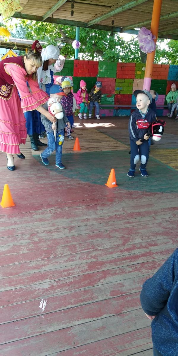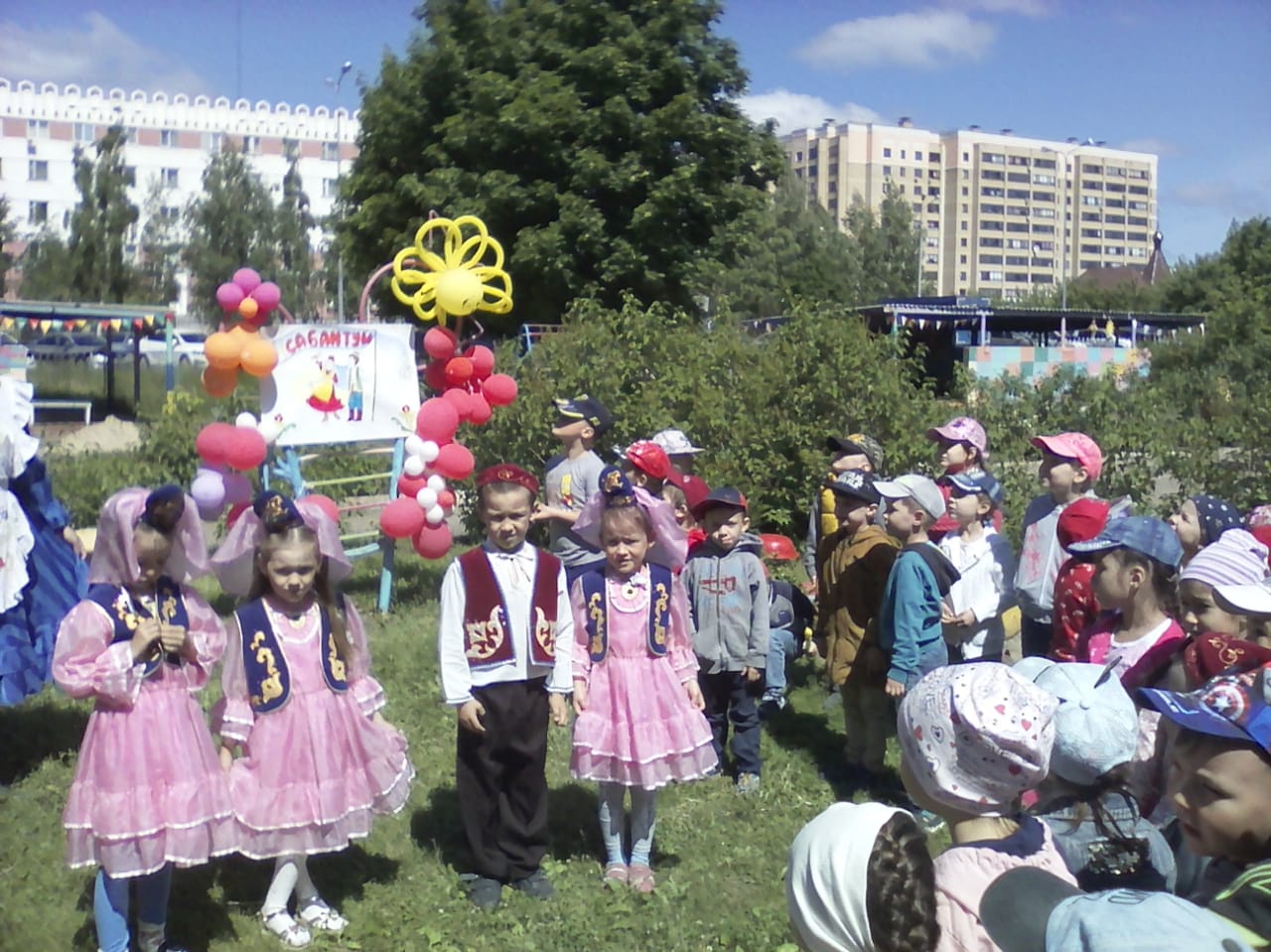 Педагоги в национальных ярких костюмах вместе с выступающими ребятами приветствовали гостей Сабантуя песней «Сабантуйга барабыз». Воспитанники прочитали стихи. Сабантуй открыт!