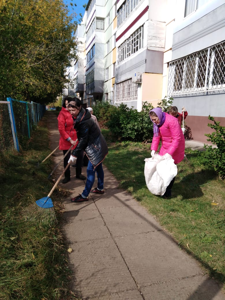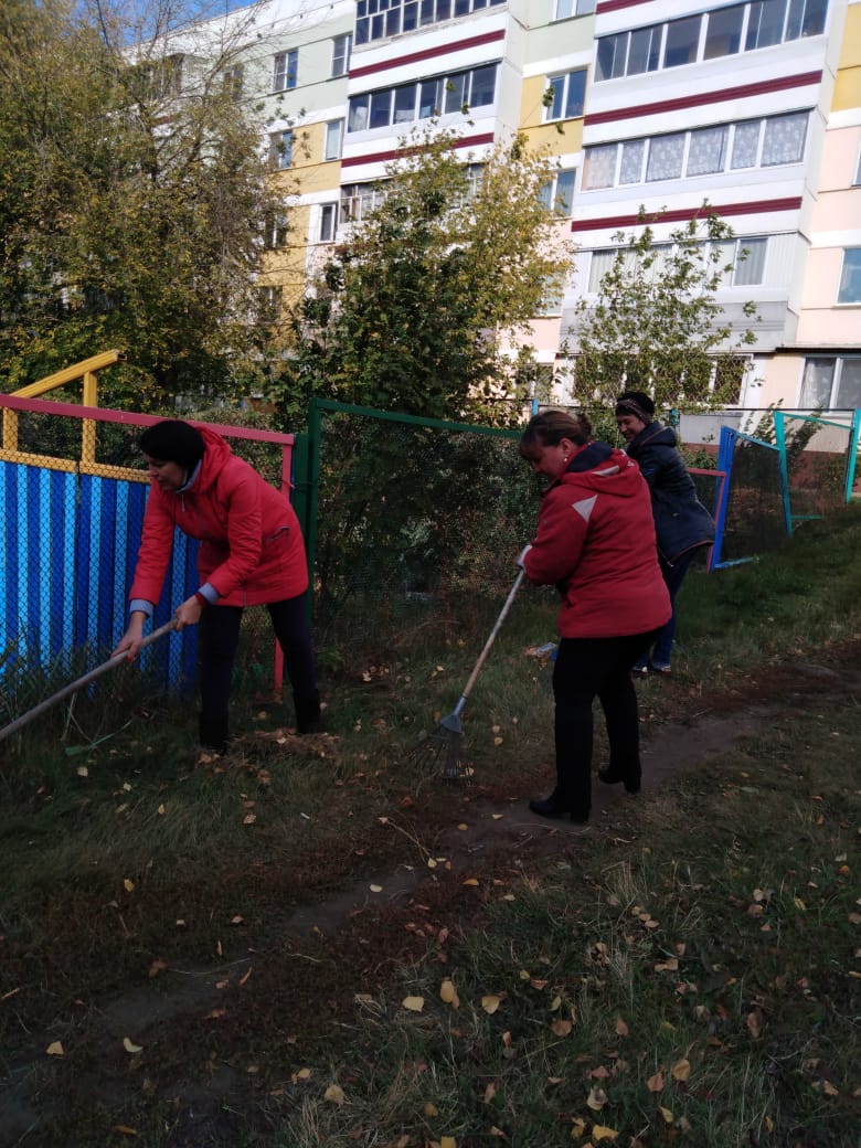 На прилегающей территории детского сада наши сотрудники очистили клумбы от опавшей листвы, подмели тротуарные дорожки, обрубили заросший кустарник, собрали мусор и вынесли его