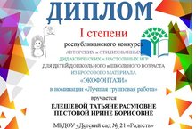 Диплом 1 степени - Елешева Т.Р., Пестова И.Б.