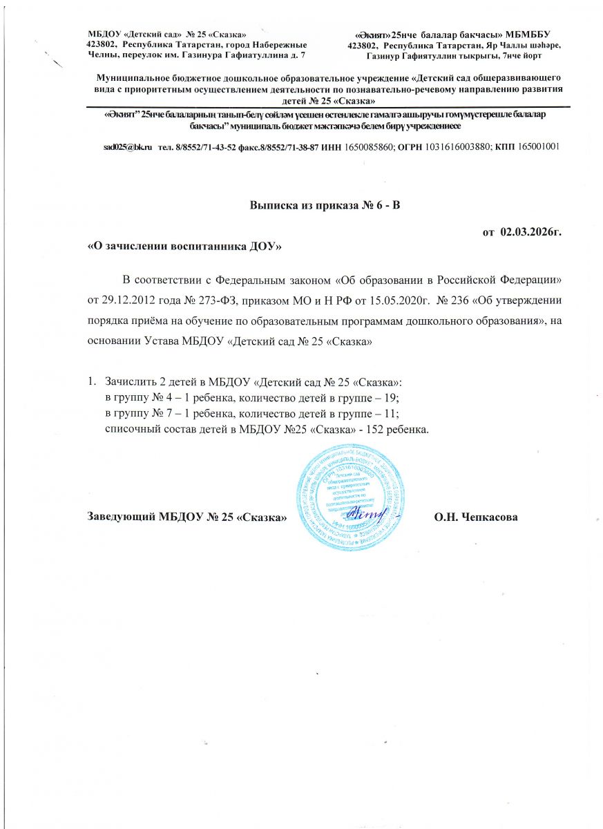 | Короткое название: | МБДОУ "Детский сад №25 "Сказка" |