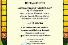 Поздравляем команду МБДОУ № 27 " Росинка" занявшую почетное III место в легкоотлетической эстафете в рамках " Детской Спортокиады. Молодцы ребята! Так держать!