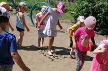 Праздничные мероприятия были организованы на прогулке на групповых участках: проводились эстаеты, подвижные игры. Для детей младших групп были организованы игры с мыльными пузырями, дети старшего дошкольного возраста создавали чудесные рисунки на асфальте.