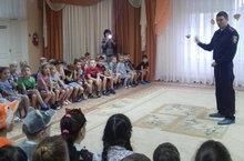 Обучение детей безопасности дорожного движения одна из основных задач взрослых.Особое значение в решении этой проблемы имеет заблаговременная и правильная подготовка самых маленьких наших пешеходов.Так, в нашем детском саду с детьми подготовительных групп были проведены тематические беседы, в которых принимали участие инспекторы ГИБДД.Они рассказали о том, как должны себя вести дети на дорогах, какие дорожные знаки должны знать, отвечали на вопросы ребят, разбирали дорожные ситуации.